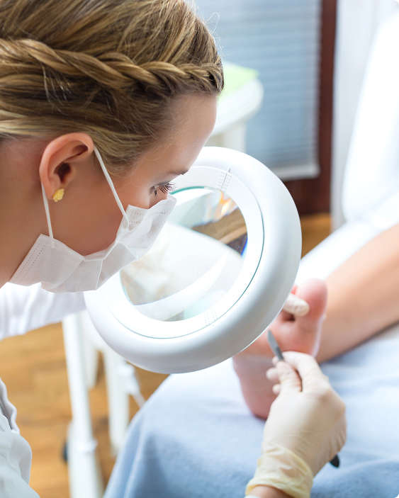 Diagnóstico y tratamiento de afecciones cutáneas y ungueales como hongos, verrugas, durezas o alteraciones de la piel.